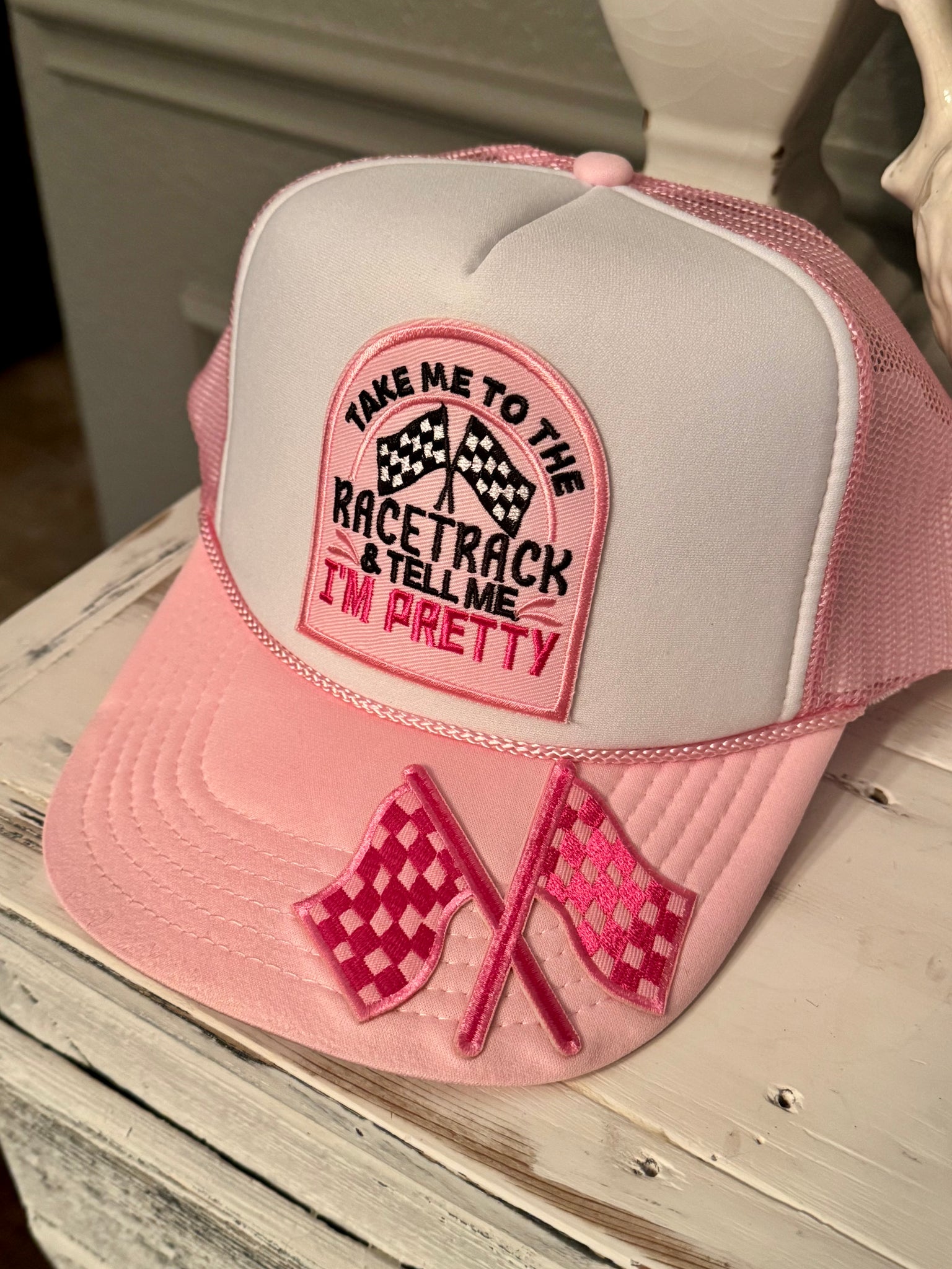 Be the first to the finish line and grab this unique and super cute patched trucker hat!