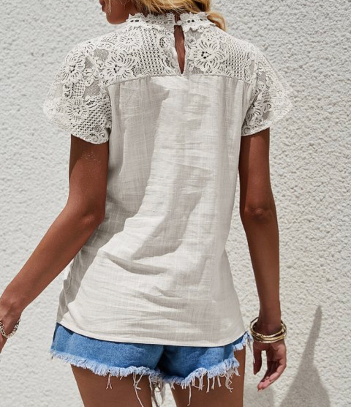 The Lacey Top is undeniably feminine and simple, yet full of personality. With its lace embellishments and dainty self, it’s a win-win for all occasions. Dress it up or down with only changing bottoms and jewelry. Perfect for a day at the office followed by drinks at the bar!
