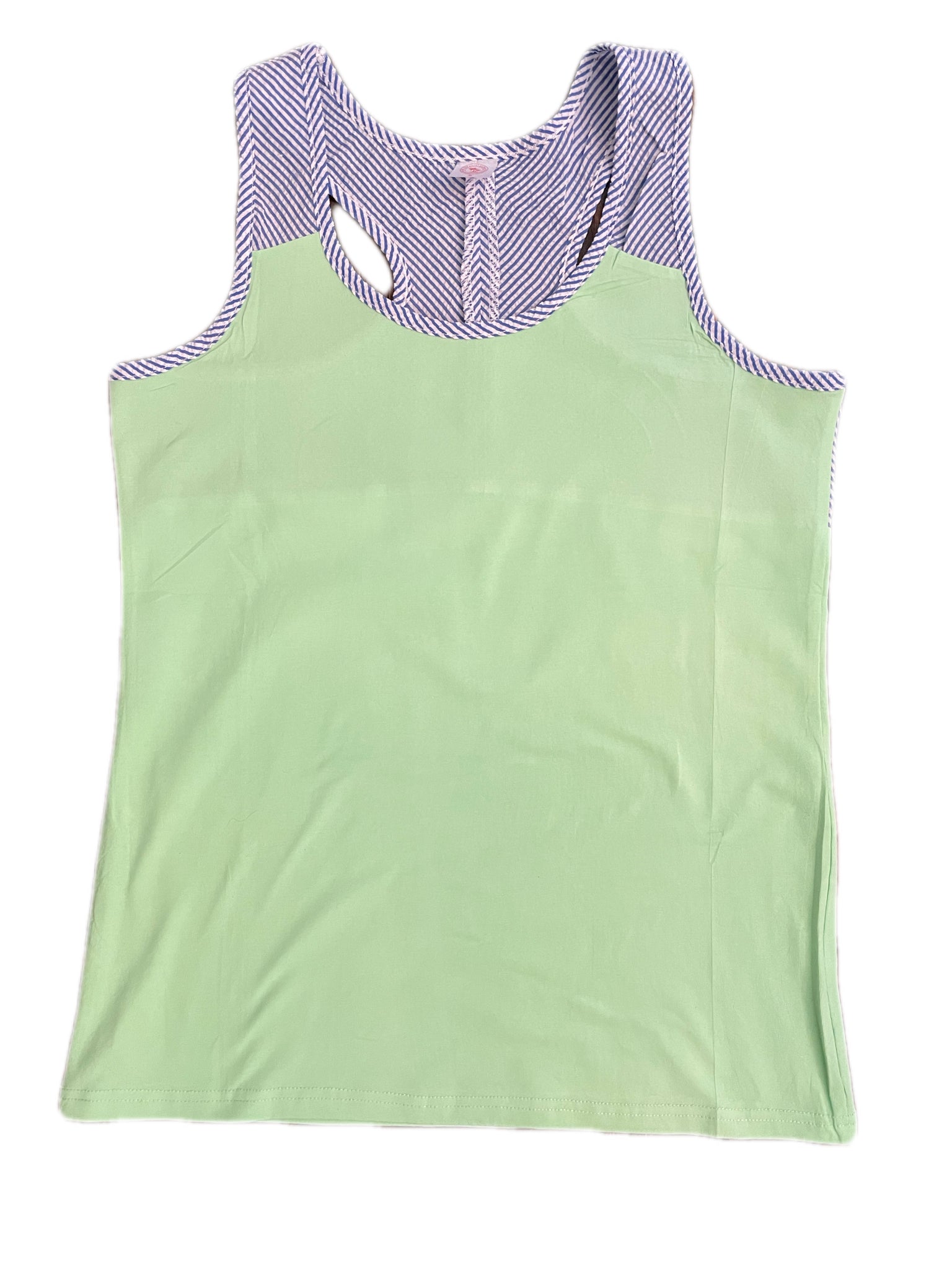 Looking for something that is fun & different than the normal tank top? These super soft tank tops are trimmed in preppy seersucker and will be the perfect addition to anyone's Spring/Summer wardrobe. Ideal for those casual days by the pool, on the boardwalk or at the beach.