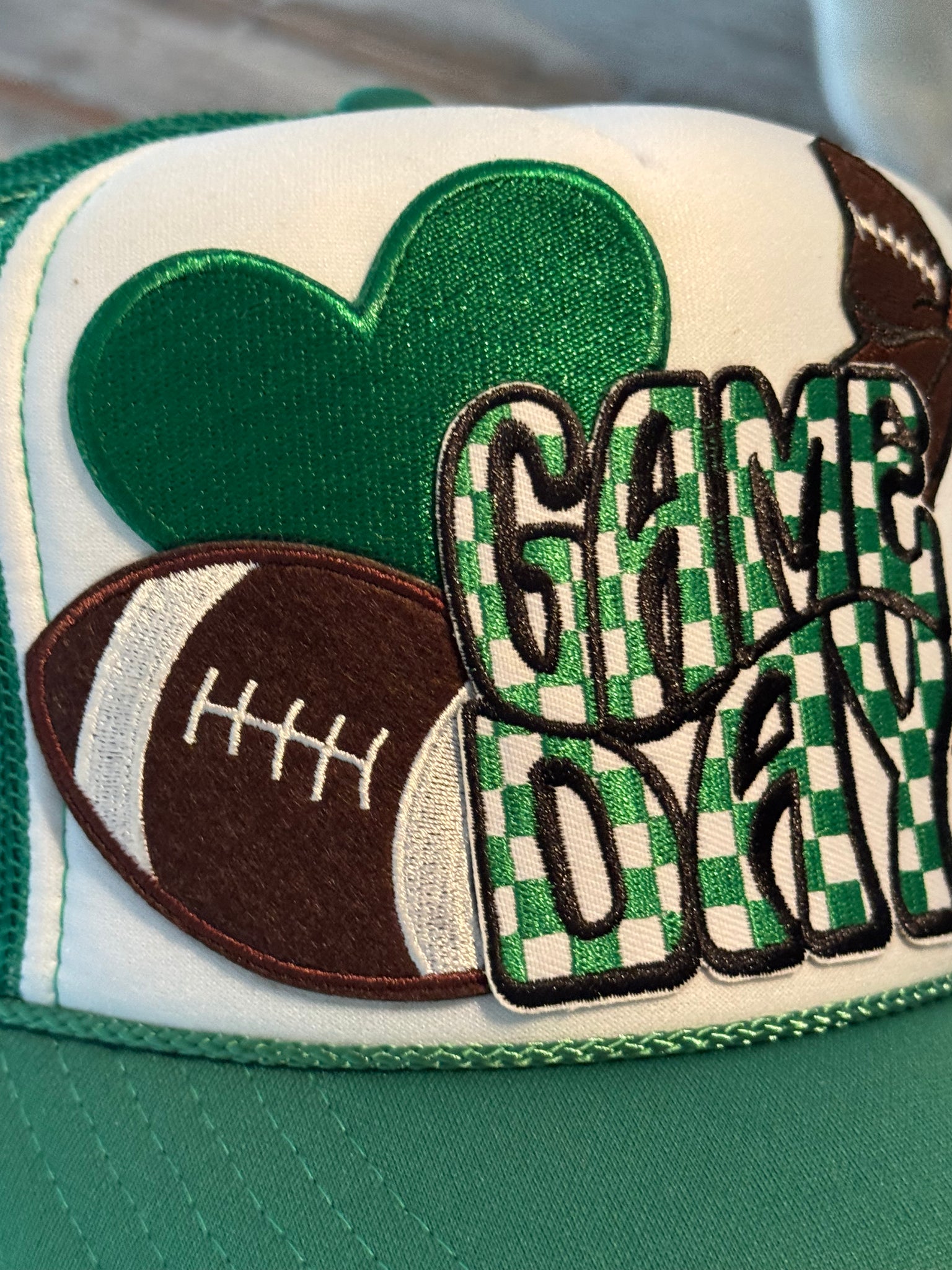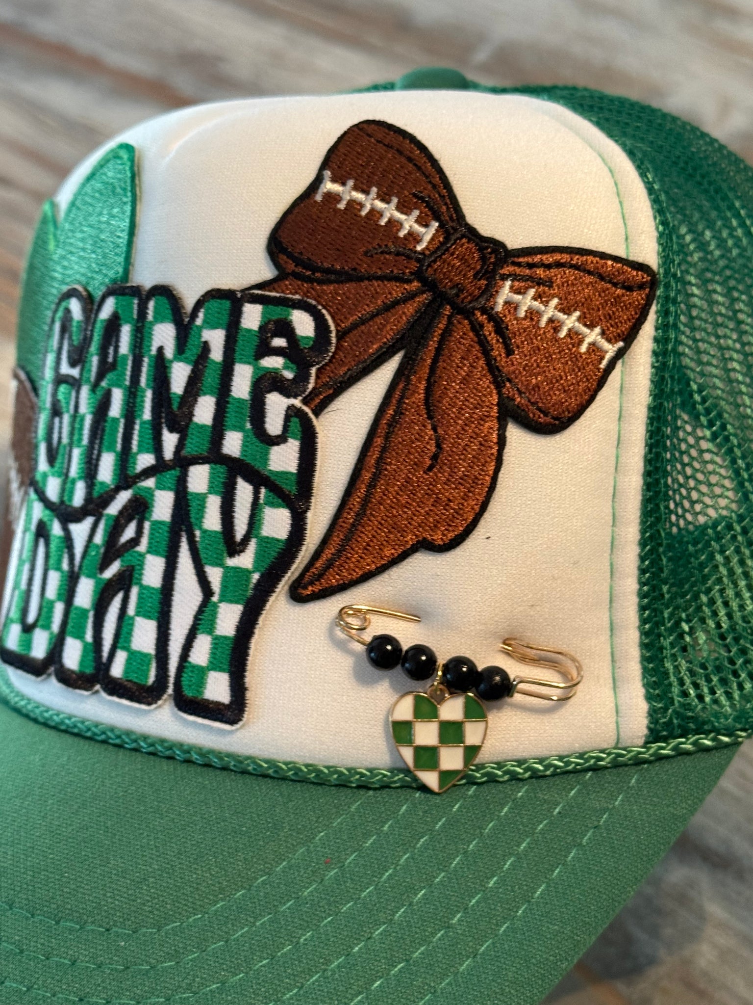 Stand out in the bleachers with this green and white football game day hat! One of a kind! You won’t find another one like it!
