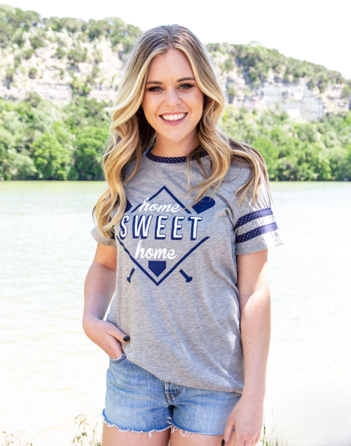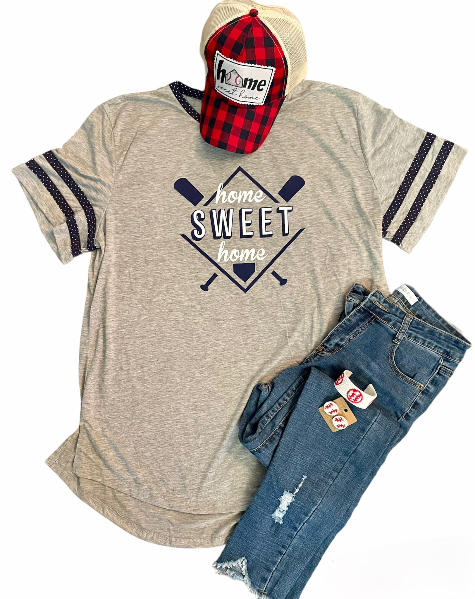 Cheer on your favorite team with this adorable tee with polka dot trim! This tee can work for both high school and college sports teams. We've got spirit, how 'bout you?!