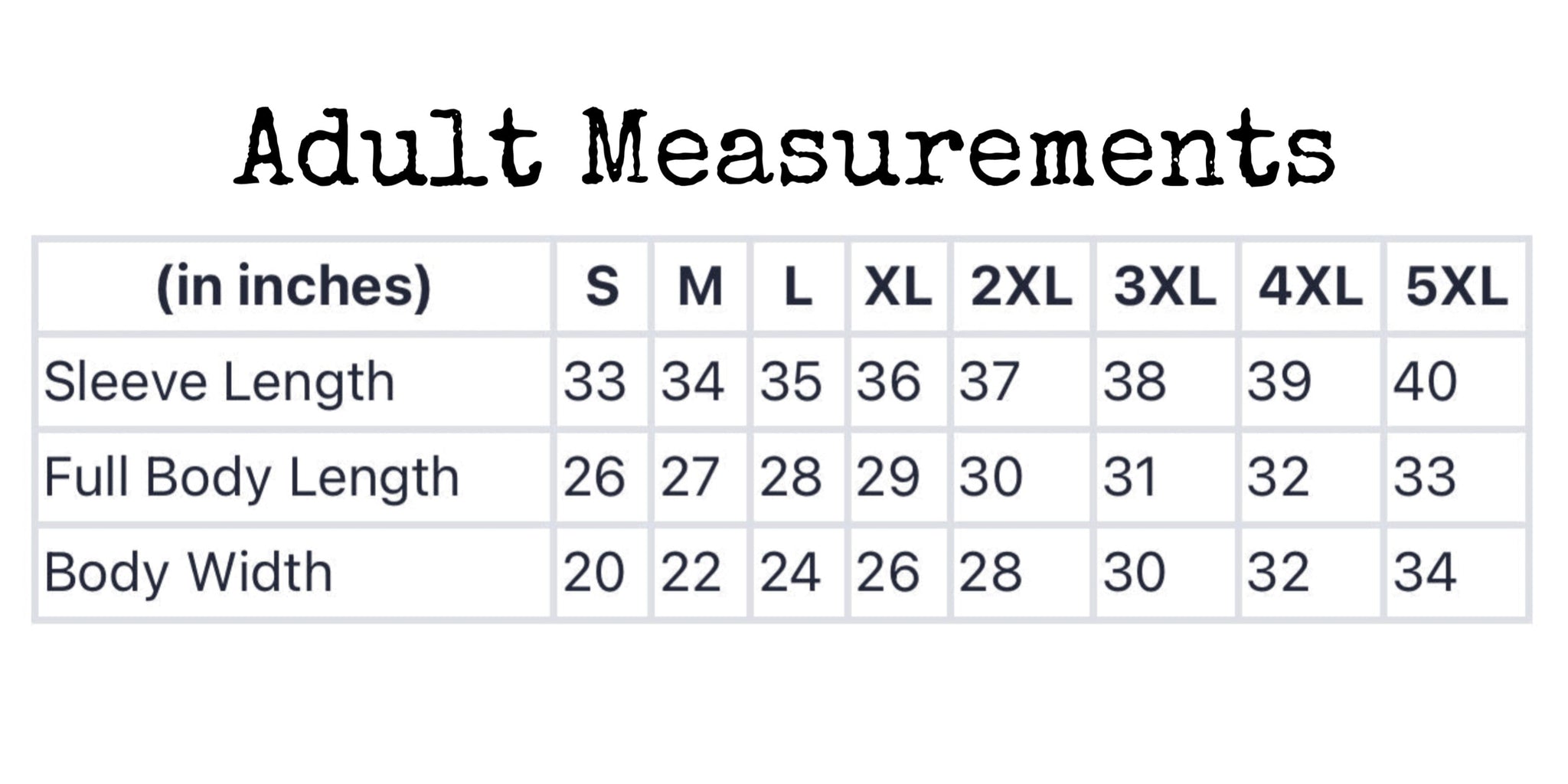 (in inches) S M L XL 2XL 3XL 4XL 5XL