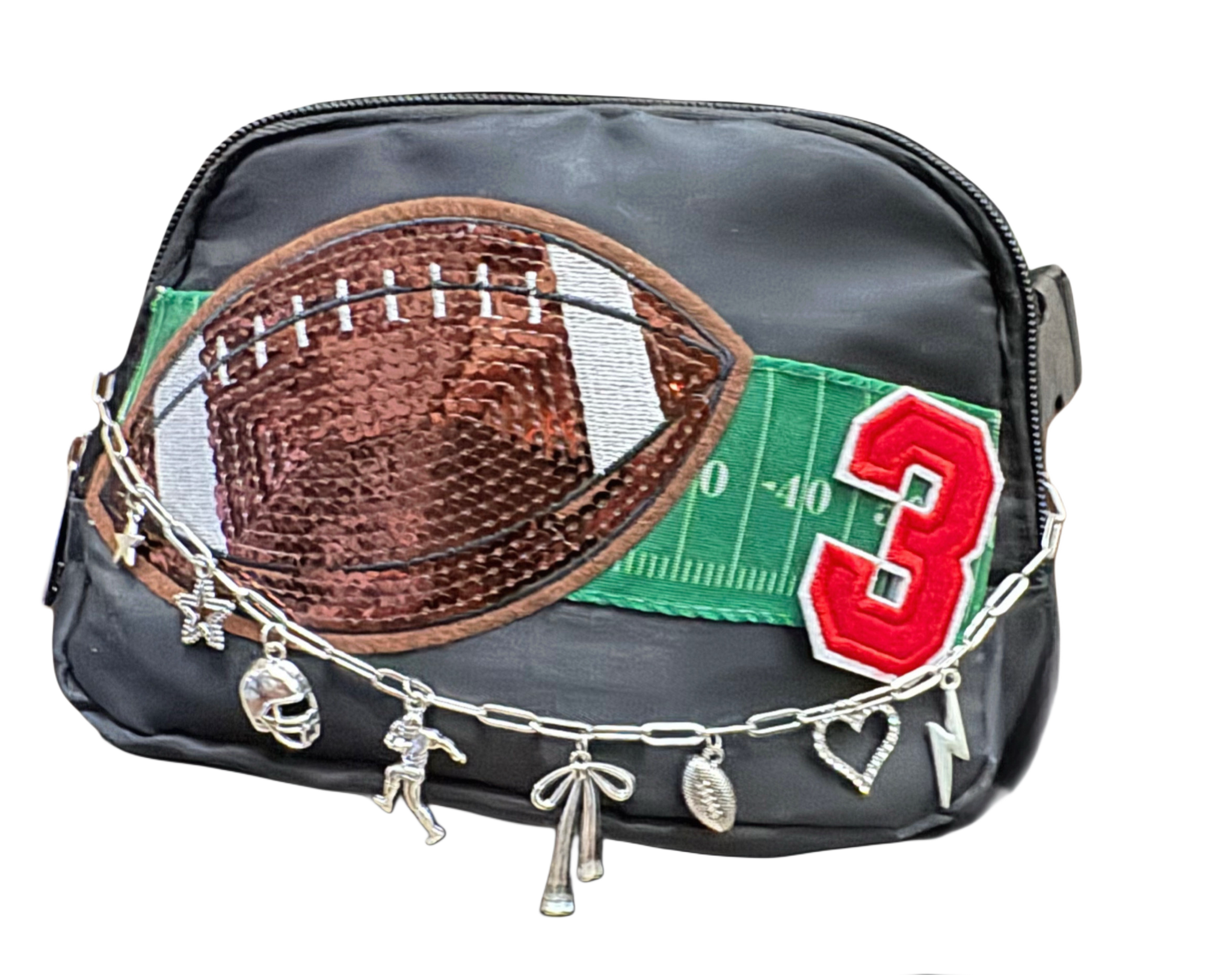 Show up for game day in this TRULY one of a kind fanny pack with your favorite players number! No need to sling a bag over your shoulder or attempt to keep up with your phone, throw the necessities in this adorable bag and save your hands for more important things!